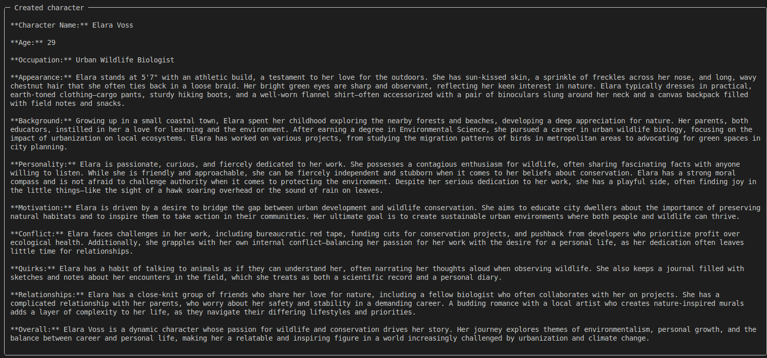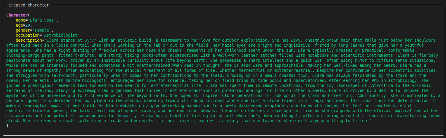 Let's process existing characters and extract metadata from their descriptions. Let's imagine, that I have already an instance of the class Character. I would like to use it in a prompt in order to process that information, and extract some of the information.